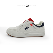 Eleva tu estilo casual con las zapatillas JUPITER-WHNV-W5 de Beverly Hills Polo Club. Este modelo combina una base blanca impecable con detalles en azul marino y rojo vibrante, capturando la esencia del estilo "preppy" y deportivo que define a la marca.